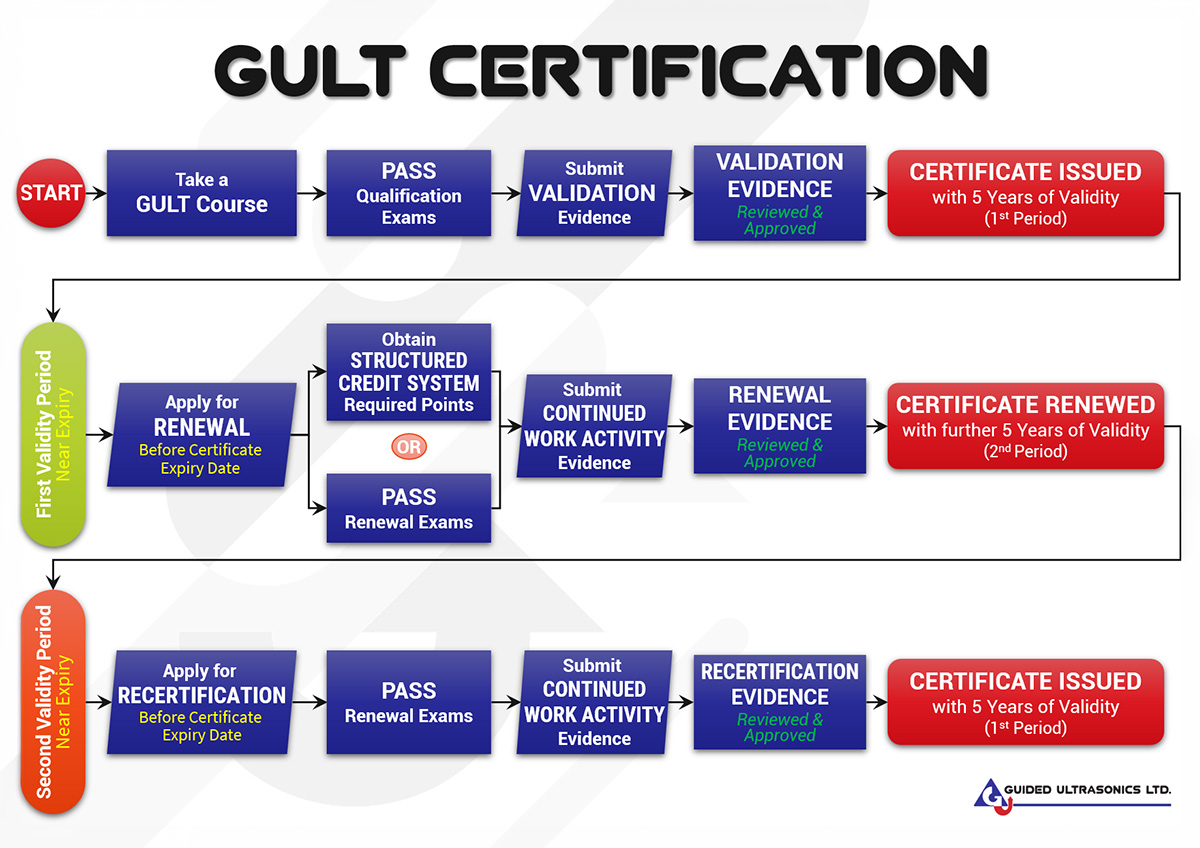 Validation requirements depend on the qualification applied for and are communicated in a Validation Letter sent to candidates who have passed the qualification examinations. Once validation requirements are satisfied, a GULT Certificate is issued with an initial validity period of 5 years.